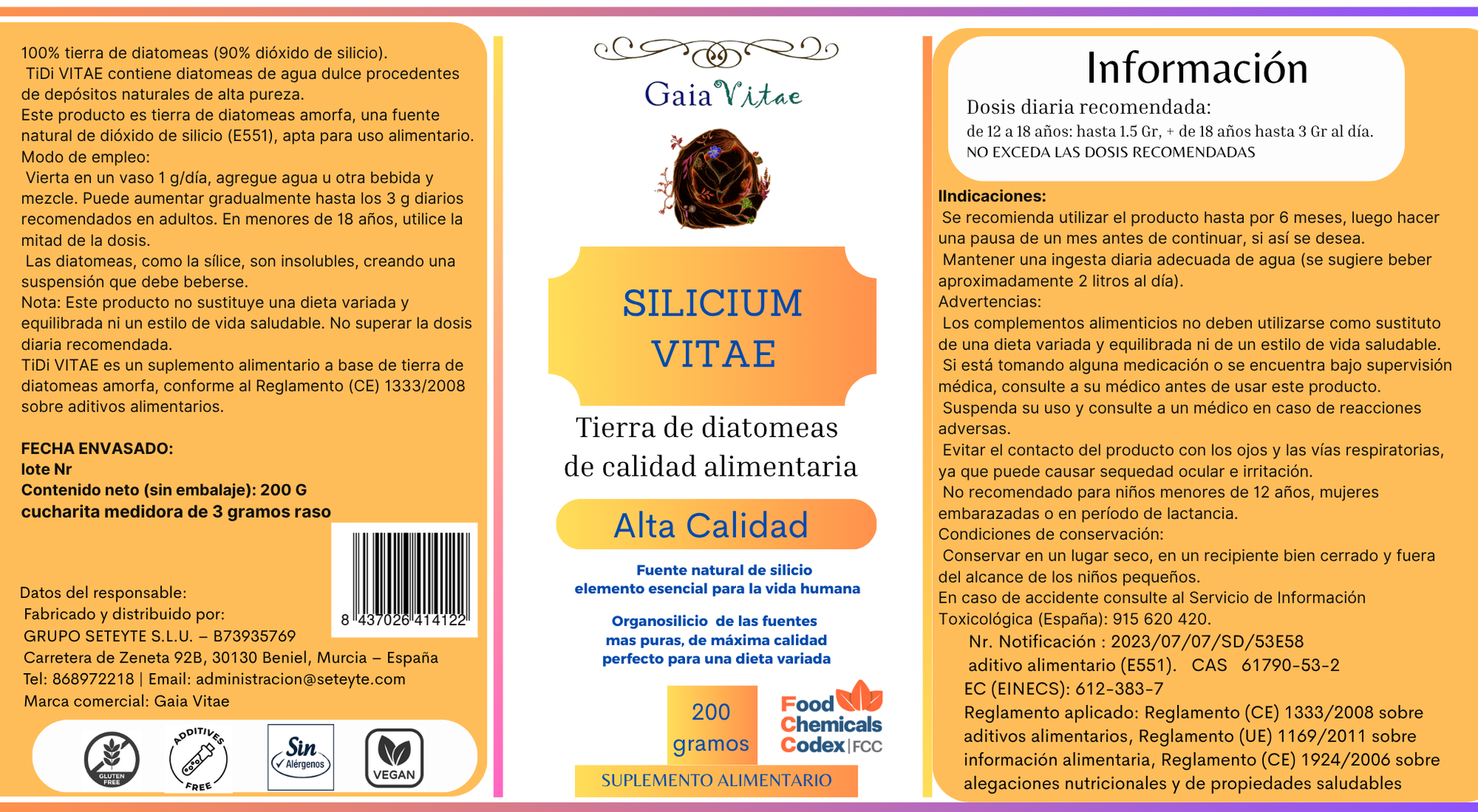 Complément alimentaire à base de Terre de Diatomées®, adapté à la consommation humaine, composé de millions de frustules (coquilles végétales dures) provenant d'algues unicellulaires anciennes appelées diatomées, fournissant du silicium à l'organisme. Convient aux enfants de plus de 12 ans et aux adultes. Ce produit 100 % naturel est exempt de tout procédé chimique susceptible d'altérer sa pureté et sa qualité.